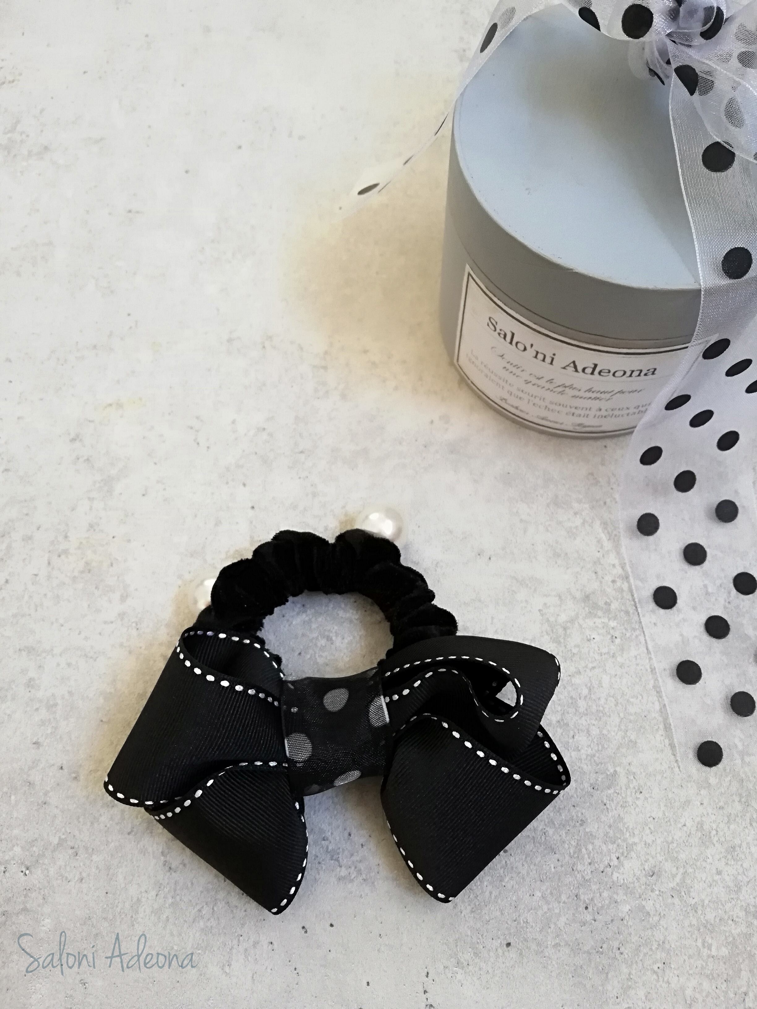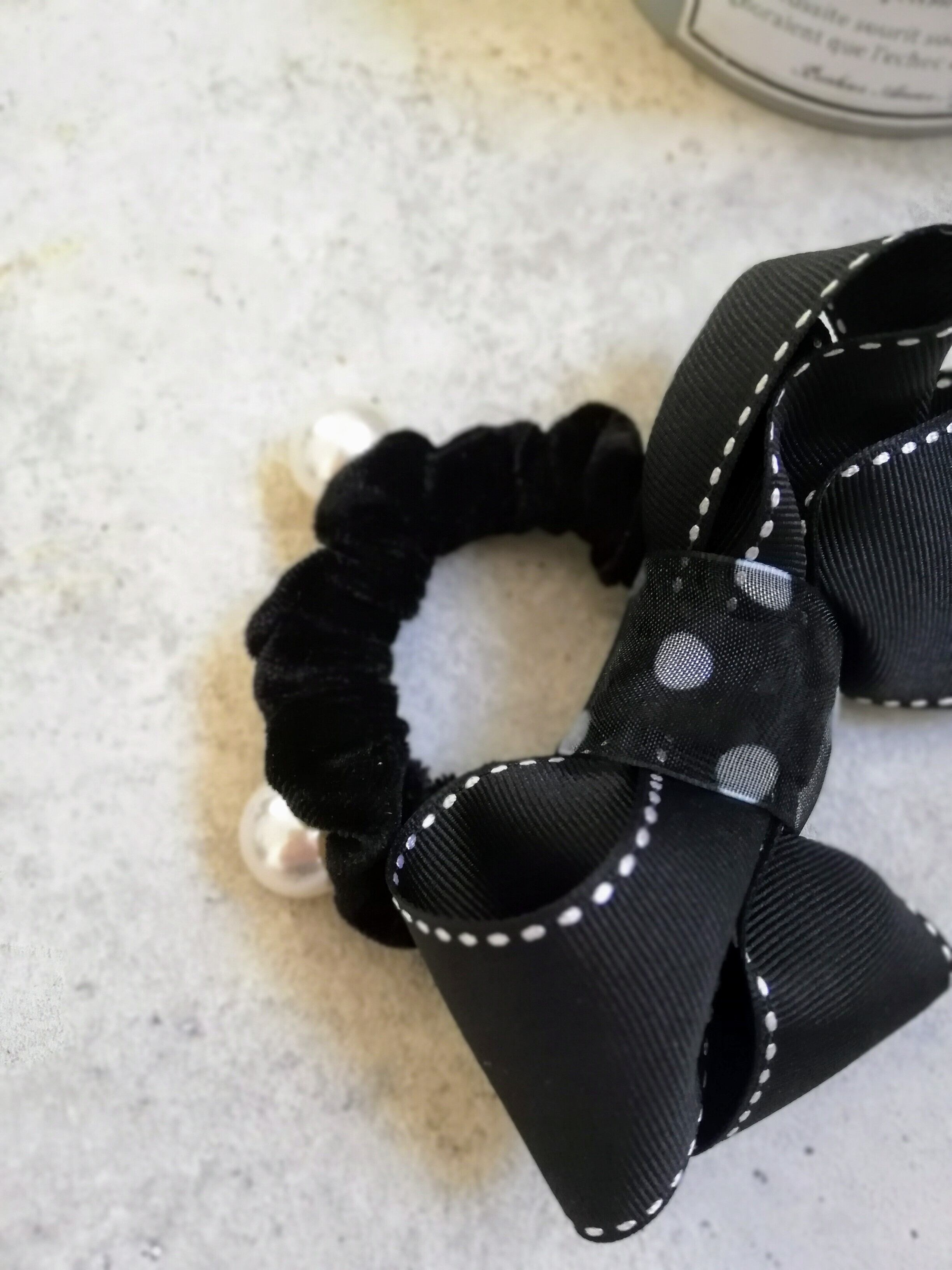 パールのついたリボンゴムがアクセント